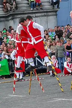 À Namur, on pratique depuis le début du XVe siècle les combats sur échasses. Ces combats qui rassemblaient au XVIIe siècle des milliers de jouteurs et de spectateurs sont encore pratiqués de nos jours par les échasseurs namurois. Le troisième dimanche de septembre ce sont près de 6 000 personnes qui assistent au grand combat de l'échasse d'or.