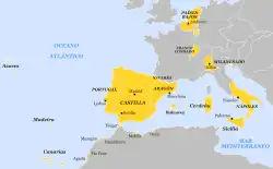- À Léopold Ier reviendraient la Couronne de Castille, la Couronne d’Aragon, le duché de Milan, les présides de Toscane, la Sardaigne, les îles Baléares, les îles Canaries et les Indes occidentales.