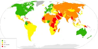 Carte représentant le niveau de répression de la traite des êtres humains des États en 2010.