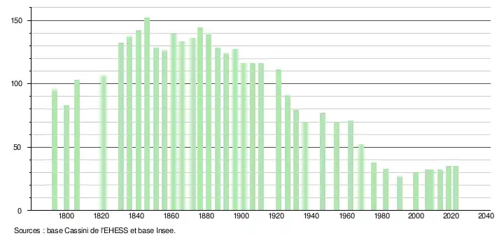 - ↑ Fiches Insee - Populations de référence de la commune pour les années 2006, 2007, 2008, 2009, 2010, 2011, 2012, 2013, 2014, 2015, 2016, 2017, 2018, 2019, 2020, 2021 et 2022.