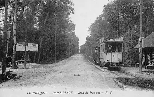 - ↑ Indicateur Chaix, horaires de mai et juin 1914. Le tramway partait de la gare d'Étaples à 6h10, 7h45, 8h35, 9h55, 10h50, 11h40, 13h30, 15h00, 16h10, 17h10, 18h20 et 19h35, de la station de Paris-Plage à 6h40, 8h10, 9h05, 10h25, 11h15, 12h05, 14h15, 15h35, 16h35, 17h40, 18h50, 20h05 (exemple des horaires de mai 1914).
