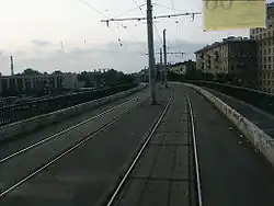 Voies du tram sur le viaduc au-dessus des voies de la gare Avtovo