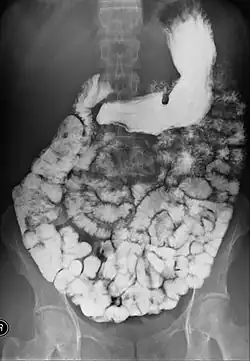 Un transit baryté est un examen radiologique permettant d'étudier le tube digestif haut : œsophage, estomac, duodénum et intestin grêle[1]. Il consiste à faire ingérer par un patient de la baryte, un produit de contraste opaque aux rayons X. Puis des clichés radiographiques sont pris à différents temps, permettant d'explorer l'ensemble du tractus digestif haut à mesure que celui-ci se remplit de baryte.