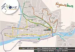 Depuis son lancement en , le réseau Nyons bus dessert la seule commune de Nyons.