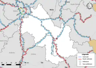 | Autoroutes | 259 km[1] | A7 A41 A43 A48 A49 A51 A432 A480 |