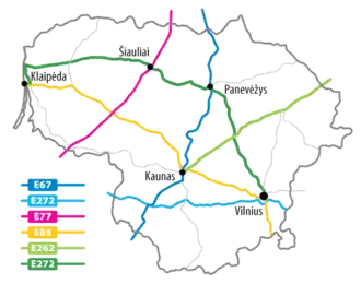 - Autoroute A1 — reliant les villes de Vilnius, Kaunas et Klaipėda ;