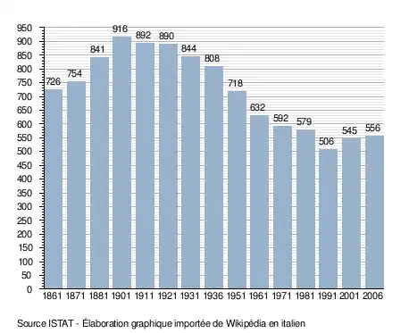 - ↑ (it) Popolazione residente e bilancio demografico sur le site de l'ISTAT.