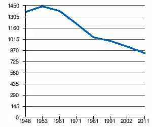 - 1 2 (sr + en) « Livre 20 : Vue d'ensemble comparative de la population en 1948, 1953, 1961, 1971, 1981, 1991, 2002 et 2011, données par localités) » [PDF], pages du recensement de 2011 en Serbie - Institut de statistique de la république de Serbie, (consulté le )