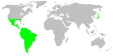 Les espèces de cette famille se rencontrent en Amérique du Sud, en Amérique centrale, dans le Sud de l'Amérique du Nord et au Japon[1].