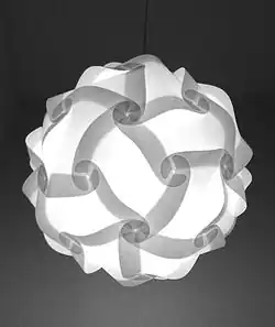 Le concepteur danois Holger Strøm a utilisé le triacontaèdre rhombique comme une base pour la conception de sa lampe constructible IQlight. (IQ pour « Interlocking Quadrilaterals », quadrilatères interbloquants)