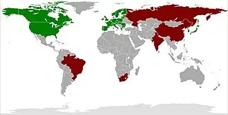En pratique, la plupart des pays du G7 et des BRICS se retrouvent dans le Groupe des vingt.