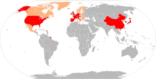 La Triade concentre l'essentiel des personnes disposant de plus de 1 million $ d'actifs financiers (hors immobilier) en 2008[23]. Les États-Unis, le Japon et l'Allemagne concentrent 54 % des millionnaires dans le monde (ils sont 8,6 millions soit 0,12 % de la population mondiale).