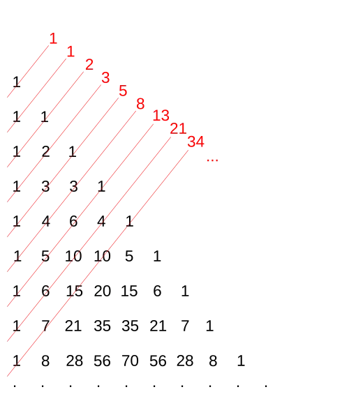 Les sommes des « diagonales ascendantes » du triangle de Pascal forment la suite de Fibonacci.