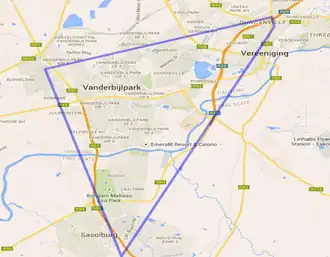 Le Triangle du Vaal est une zone triangulaire formée par les villes de Vereeniging, Vanderbijlpark et Sasolburg à environ 60 km au sud de Johannesbourg en Afrique du Sud.