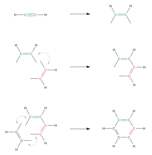 Exemple de trimérisation de l'acétylène :