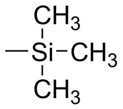 Le groupe triméthylsilyle lié à un méthyle forme le tétraméthylsilane possédant, lui aussi, le sigle TMS. Les composés avec un ou plusieurs groupes triméthylsilyles ne sont pas trouvés dans la nature.