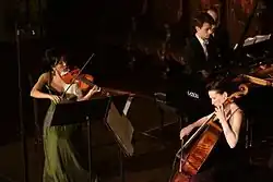 Toujours en musique classique, ce mot fait également référence à la partie centrale d'une pièce de forme ternaire — ABA. Ce sens est à l'origine du «menuet et trio» — ou du «scherzo et trio» — qui constitue souvent le troisième mouvement d'une symphonie, d'une sonate ou d'une œuvre apparentée.
