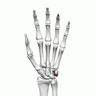 - une face inféro-interne possédant une facette ovalaire concave s'articulant avec le pisiforme pour former l'articulation de l'os pisiforme.