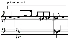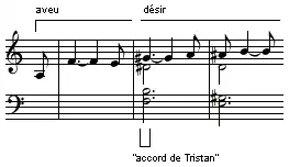 Cette idée se retrouve particulièrement dans le célèbre accord de Tristan : son instabilité tonale peut alors traduire l'amour impossible entre les deux protagonistes, cette envie permanente mais irréalisable. Ce n'est qu'après la Liebestod d'Isolde que l'accord se résout. Le parachèvement de l'amour des deux personnages ne se fait que dans la mort : il leur est donc impossible d'assouvir leurs désirs sur Terre[12].