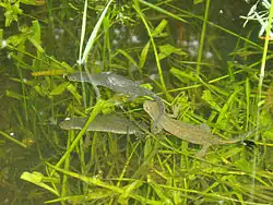 Ils muent et perdent leur peau rugueuse et terne (phase terrestre) pour une peau lisse plus colorée qui permet une respiration partielle dans l'eau (phase aquatique). Les mâles acquièrent des couleurs encore plus visibles et une petite crête le long du corps.