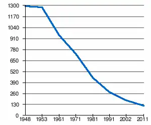 | 1 292 | 1 279 | 949 | 731 | 447 | 277 | 183[2] | 114[1] |