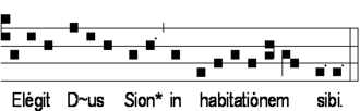 L'antienne ci-dessus est un exemple de structure modale où la deuxième teneur est située sur le la, de type BqA. L'édition vaticane la classe dans le troisième mode, mais cette structure modale est plutôt caractéristique du quatrième.