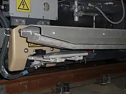 Le troisième rail, historiquement en acier, se voit remplacé de plus en plus par un rail en aluminium[3] possédant une surface en acier inoxydable, sur laquelle viennent frotter les collecteurs (frotteurs ou patins) des trains.