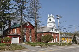 Une église et l'ancienne école de Troy.
