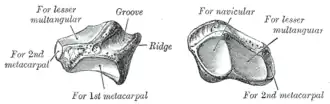 Le trapèze (ou os trapèze) est un os du poignet. C'est l'os le plus latéral de la deuxième rangée des os du carpe dont le rôle fonctionnel (en duo avec l'os scaphoïde) est fondamental dans la biomécanique du pouce.