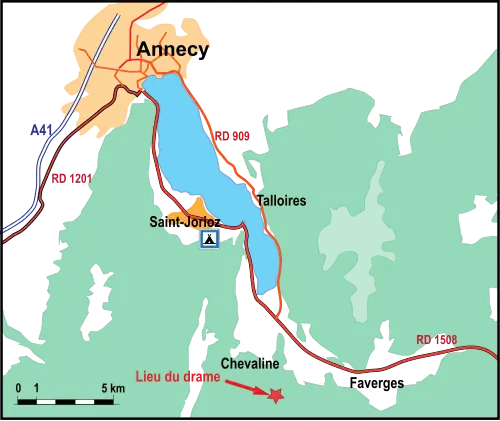 - ↑ D'où l'erreur de la part de la presse qui a cru que ce parking était situé sur le territoire de la commune de Chevaline, alors qu'il est en fait sur le territoire de la commune de Doussard.