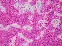 Les sarcomes d'Ewing, et plus généralement les tumeurs neuroectodermiques primitives (PNET), montrent une prolifération d'architecture diffuse, composée de petites cellules rondes au rapport nucléocytoplasmique élevé[5].
