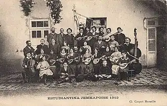 Certes, en 1916, il a bien existé une estudiantina féminine, créée dans l'émigration espagnole au Brésil[14]. Mais on ne lui connaît pas d'équivalent durant plus de 60 ans[réf. nécessaire].