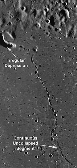 Le LRO a photographié plus de 200 puits qui semblent correspondre à des tunnels de lave ou des cavernes souterraines, d'une largeur comprise entre 5 m et plus de 900 m[14],[15].