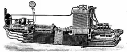 Dessin d'une turbine à vapeur inventée par Charles Algernon Parsons en 1887.