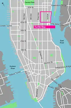 - ↑ (en-US) « Turtle Bay- Manhattan - NYC », sur CityNeighborhoods.NYC (consulté le ).