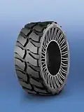 La base du support interne n’est pas l’air mais des rayons de polyuréthane flexible qui supportent la bande de roulement : le Tweel ne peut donc ni exploser ni crever. Un autre avantage serait une meilleure tenue latérale en particulier pour les profils bas.