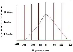Il est obtenu en faisant varier la pression dans le conduit auditif, et permet de détecter l'immobilité du tympan, ou de la chaine ossiculaire (marteau, enclume, étrier) ou l'absence de réflexe stapédien (contraction du muscle du stapes ou étrier).