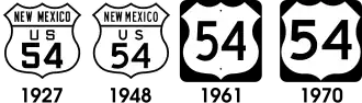 Les panneaux originaux, à la silhouette découpée, avaient un espace réservé à l'indication de l'État (le nom complet ou son abréviation). Datant de 1926, ils furent utilisés jusqu'à la fin dans années 1940.