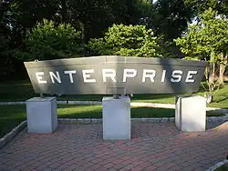 Plaque de poupe de l'USS Enterprise conservée lors de sa mise au rebut et exposée à River Vale, New Jersey
