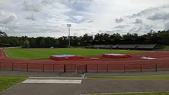 À cela s'ajoute une zone extérieure comprenant trois aires de lancer (javelot, poids, disque et marteau) et une piste de décélération et d’accélération.