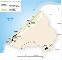La circonscription électorale d'Ubenide est formée des districts de Baiti, Denigomodu, Nibok et Uaboe. Elle est la seule à fournir quatre élus au Parlement de Nauru (au lieu de deux) au terme des élections législatives du fait de sa population.