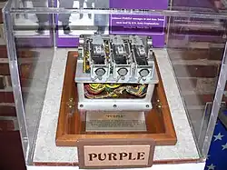Du côté de l’océan Pacifique, une machine de chiffrage japonaise, Purple pour les Américains, servait aux messages diplomatiques du plus haut niveau. Purple produisait un chiffrement par substitution polyalphabétique, mais à la différence des machines Enigma ce n’était pas une machine à rotors ; elle était constituée, entre autres, d'interrupteurs électriques pas à pas. Ce chiffrement fut cassé par le US Army Signals Intelligence Service, sous le nom de code « Magic ».