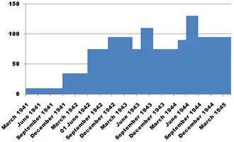Nombre de messages envoyés par jour depuis la Cabane 3 de Bletchley Park pendant la Seconde Guerre mondiale[7]