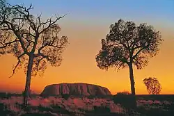 Uluru/Ayers Rock est un inselberg en grès situé dans le Territoire du Nord, au centre de l'île principale de l'Australie. Il s'élève à 348 mètres au-dessus de la plaine et est situé à 335 kilomètres au sud-ouest d'Alice Springs. Exploré et gravi par les Européens pour la première fois par William Gosse et Edwin S. Berry (en) en 1873, il a été nommé en l'honneur de Henry Ayers, Premier ministre et secrétaire en chef de l'Australie-Méridionale entre 1863 et 1877.