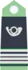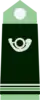 - képi, de teinte « vert forestier », à cor de chasse brodé et fausse jugulaire « argent ».