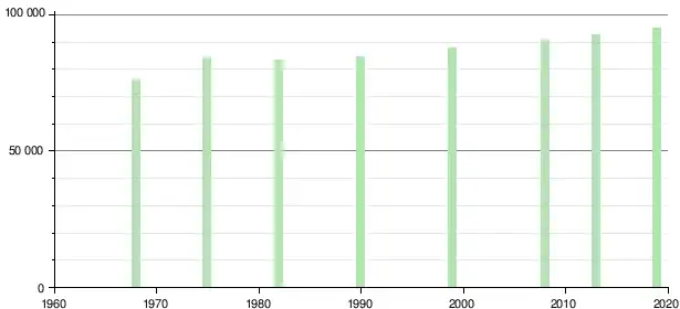 - ↑ « Population en historique depuis 1968 - Unité urbaine 2020 de Colmar (68501). », sur Insee, (consulté le )
