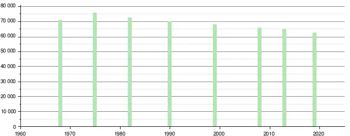 L'unité urbaine de Saint-Quentin affiche une évolution démographique négative depuis 1975 après avoir enregistré une forte croissance entre 1968 et 1975. Depuis 1999, la population est inférieure à 70 000 habitants.