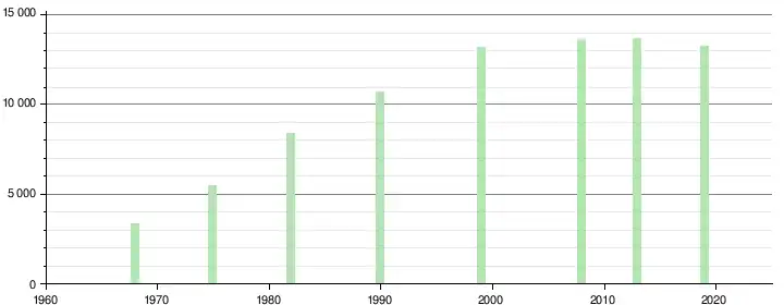 En 2022, elle compte 13 273 habitants et sa densité de population s'élève à 598 hab/km2.