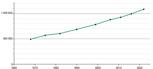 Dans cette délimitation, la population de 2022 est de 1 081 726 habitants.