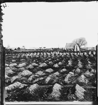 - ↑ Un seul de ces camps, celui d'Alexandria, vit passer, en deux ans (1863-1864), plus de 200 000 hommes (Stillé, p.302).